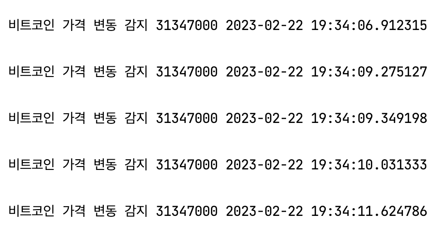 print("\n비트코인 가격 변동 감지", msg["trade_price"], datetime.datetime.now())